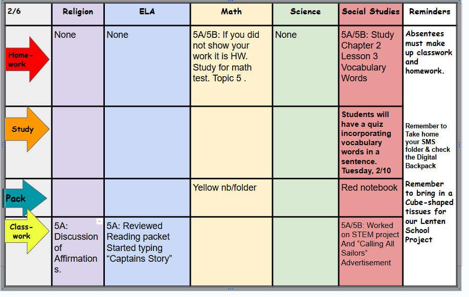 Grade 5 Schedule