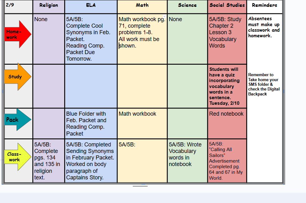 5th Grade Schedule