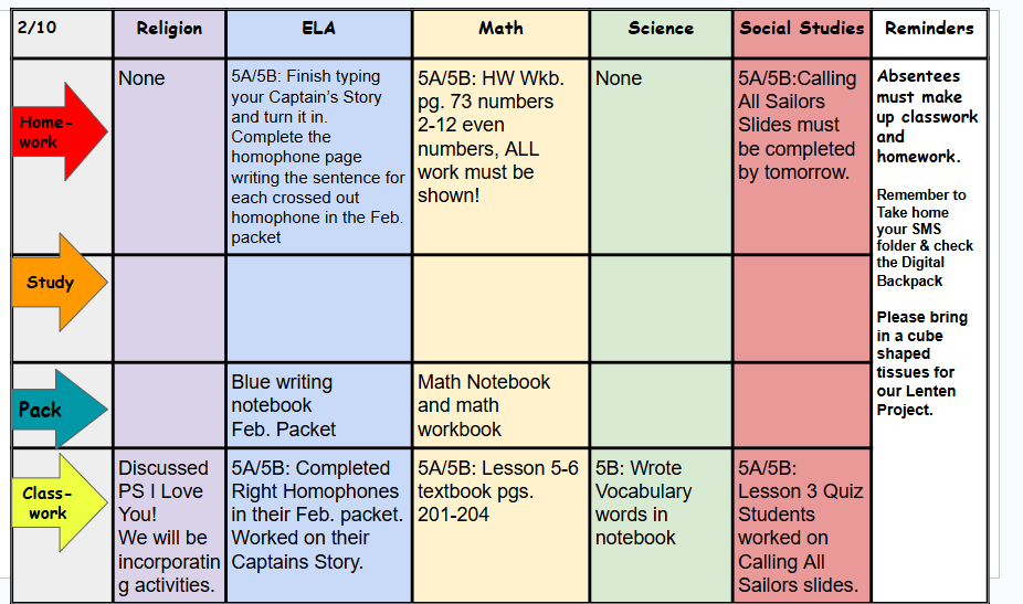 Homework/Reminders