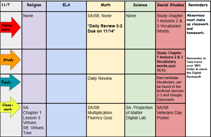 Homework/Reminders